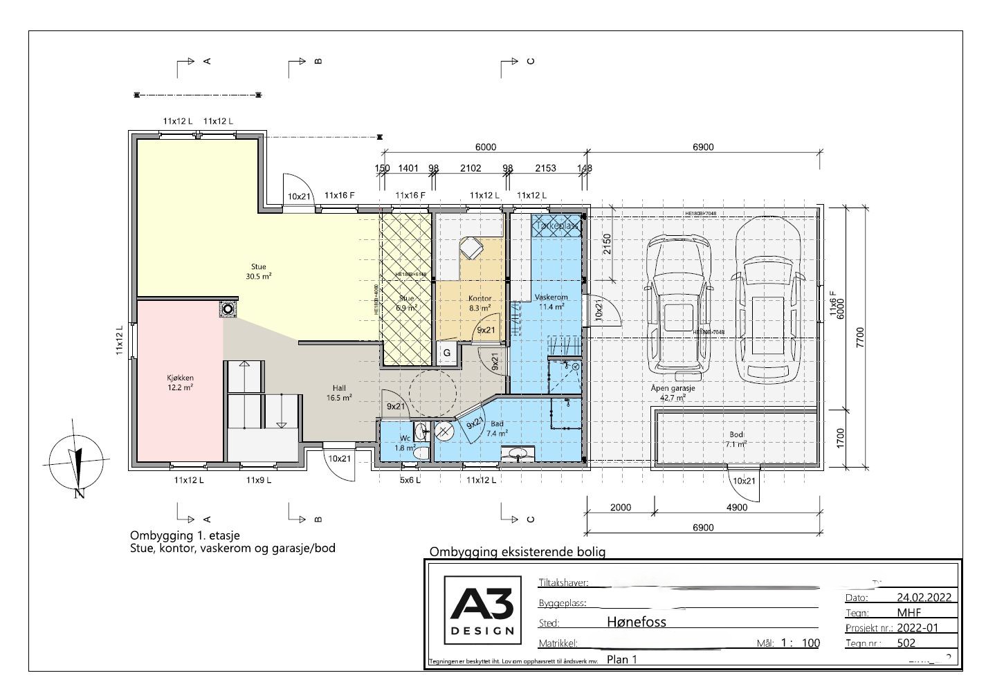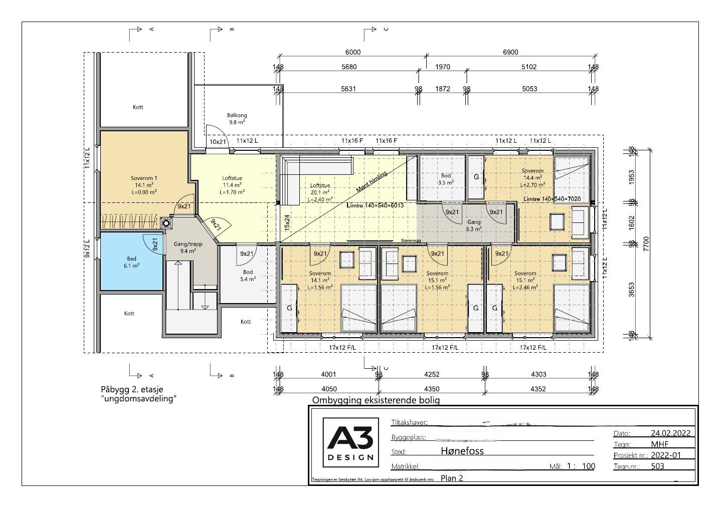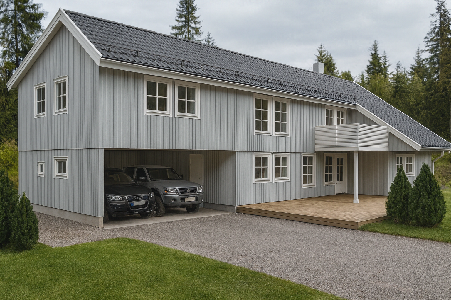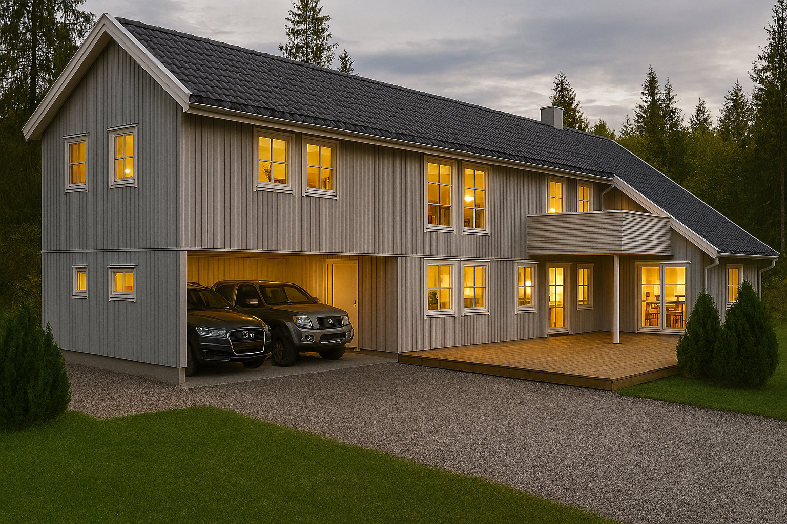 Stor enebolig i Haugsbygd, ved Hønefoss. Prosjektet omfatter rehabilitering av en enebolig hvor familien hadde behov for mer plass, men ønsket å beholde husets opprinelige utforming. Løsningen inkluderer en ny ungdomsavdeling og loftstue i 2. etasje, åpen garasje med tilhørende bod og nytt vaskerom/bi-inngang. Det ble også god lagringsplass og boder/kott. Boligen fikk både bedre funksjon og mer rom til hverdagslivet.
